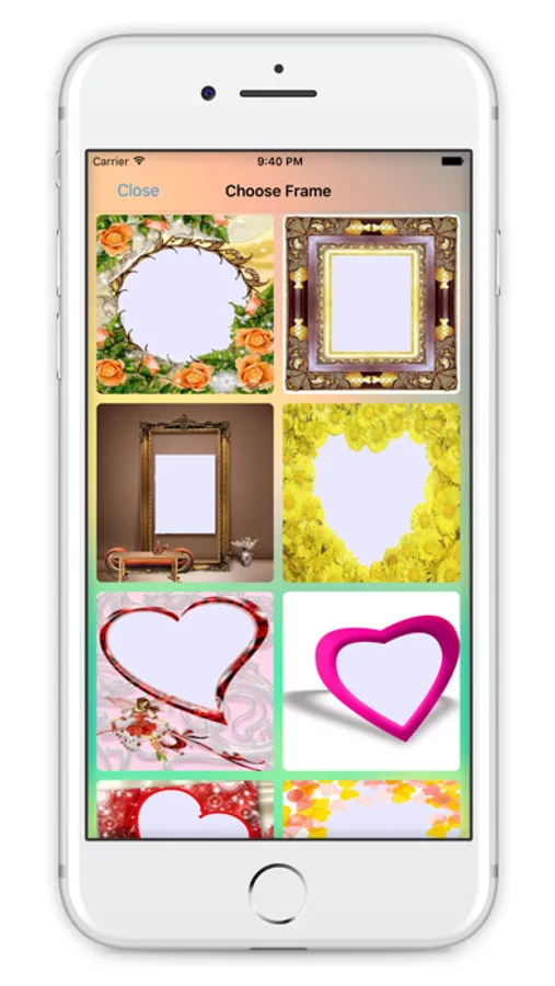 Beautiful frames that directly display on camera. Just give a pose and capture photo or take selfie.