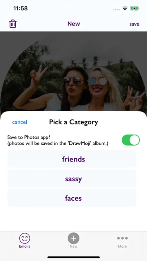 Share your creative genius with your friends in any app with the DrawMoji Keyboard or using the DrawMoji iMessage app in Messages.