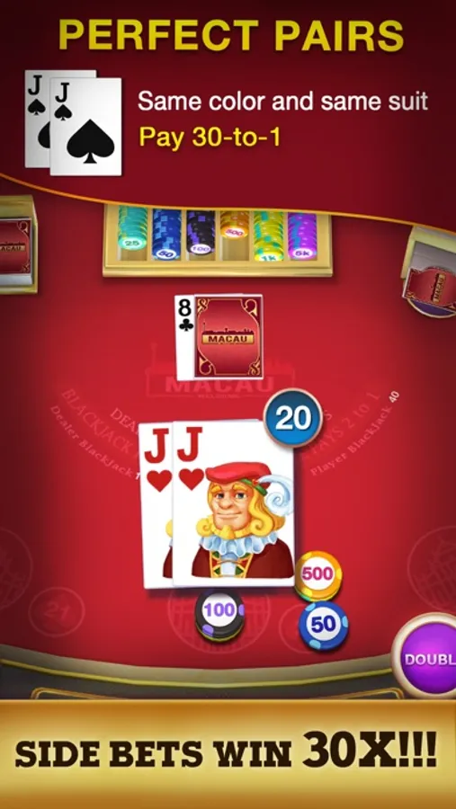 - PERFECT PAIRS side bet in Macau blackjack casino.
