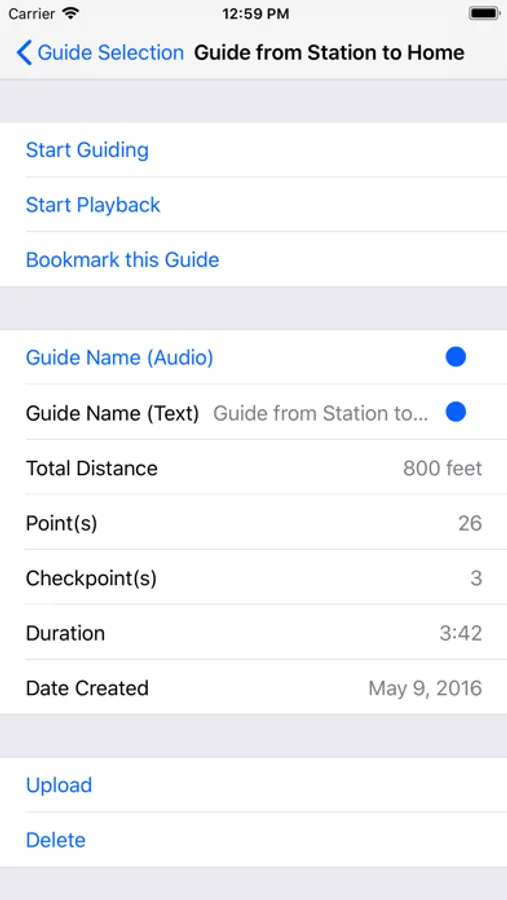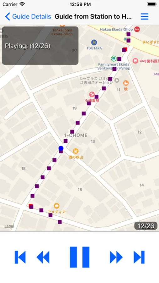 "Player mode", like a music player, plays the audio descriptions which are recorded in the guide. Use this mode when you check the contents of the guide before going out. "Guide mode" plays the audio descriptions based on the location obtained from the GPS. Use this mode when you receive the guidance while going out. You can also create your own guides with "Recorder mode". For details about each modes, please read "How to Use" in the app.