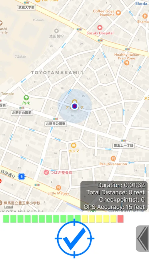 Using a mobile device outdoor can be often distracting and dangerous. Avoid operating a device as much as possible while walking, and always stop and pay attention to the surroundings when doing so. The accuracy of GPS varies depending on its environment. For a visually impaired user, it is advised to always use a white cane and rely on additional cues when traveling.