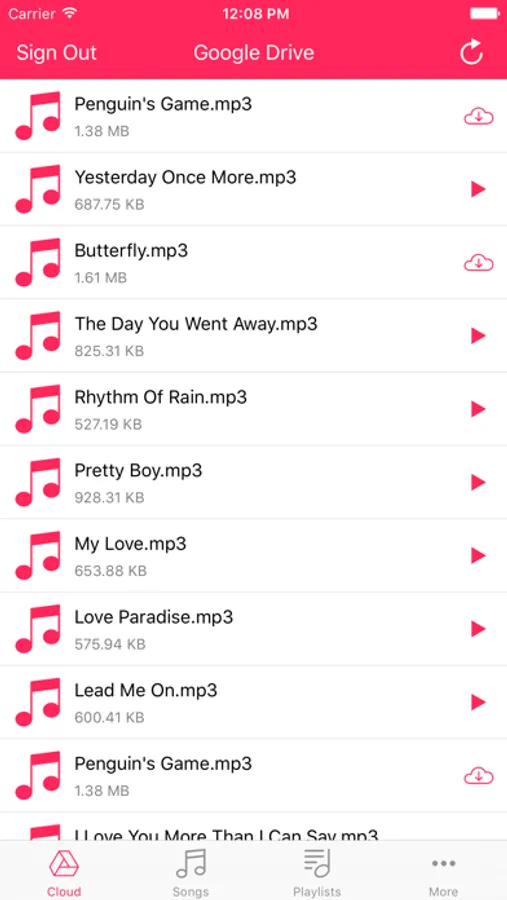 3. Get songs from your cloud storage. (You should upload your preferred songs to your cloud storage by yourself.)