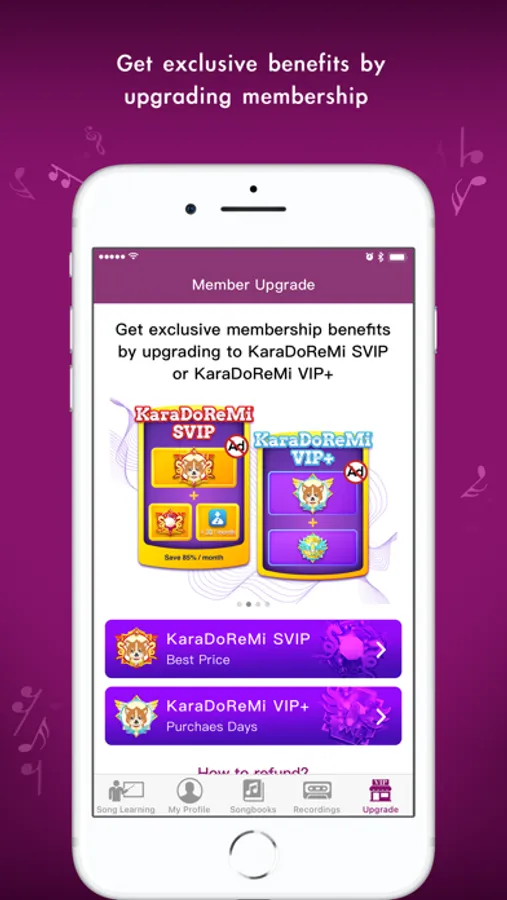 If you need any help or you want to sing and learn songs that are not on KaraDoReMi, please go to KaraDoReMi Facebook fan page https://www.facebook.com/karadoremi to private message us! (In App: My Profile → Settings)