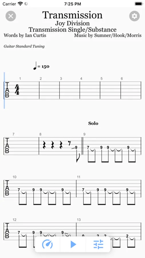 * Supports Guitar Pro format, which can include sheet music for all instruments, not just guitar but also bass, drums, keyboards, etc. Supports playing sound and adjusting speed, which is a great tool for practice and advancement.
