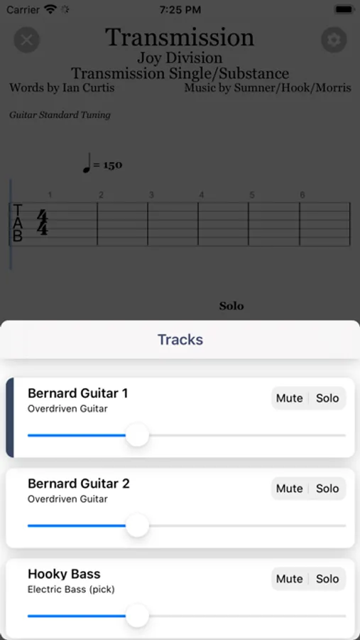 - GTP formate supports track volume adjustment and muting the guitar track. Use the sheet music as an accompaniment to play like a guitarist in a band.