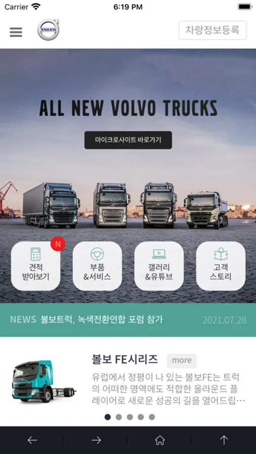 이제는 모바일에서도 볼보트럭코리아에서 제공하는 다양한 정보와 혜택을 누리실 수 있습니다.