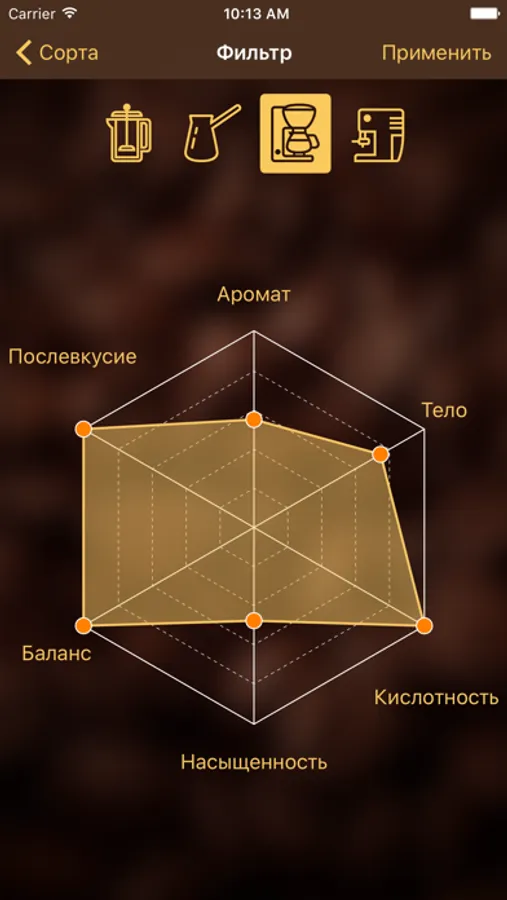 Часто задаетесь вопросом, какой же сорт кофе лучше выбрать? Постоянно ищете «именно тот» неповторимый вкус? Теперь вы сможете воспользоваться удобным поиском, выбрать сорт кофе, просмотреть диаграмму вкуса, а также изучить рекомендации по способу его приготовления.
