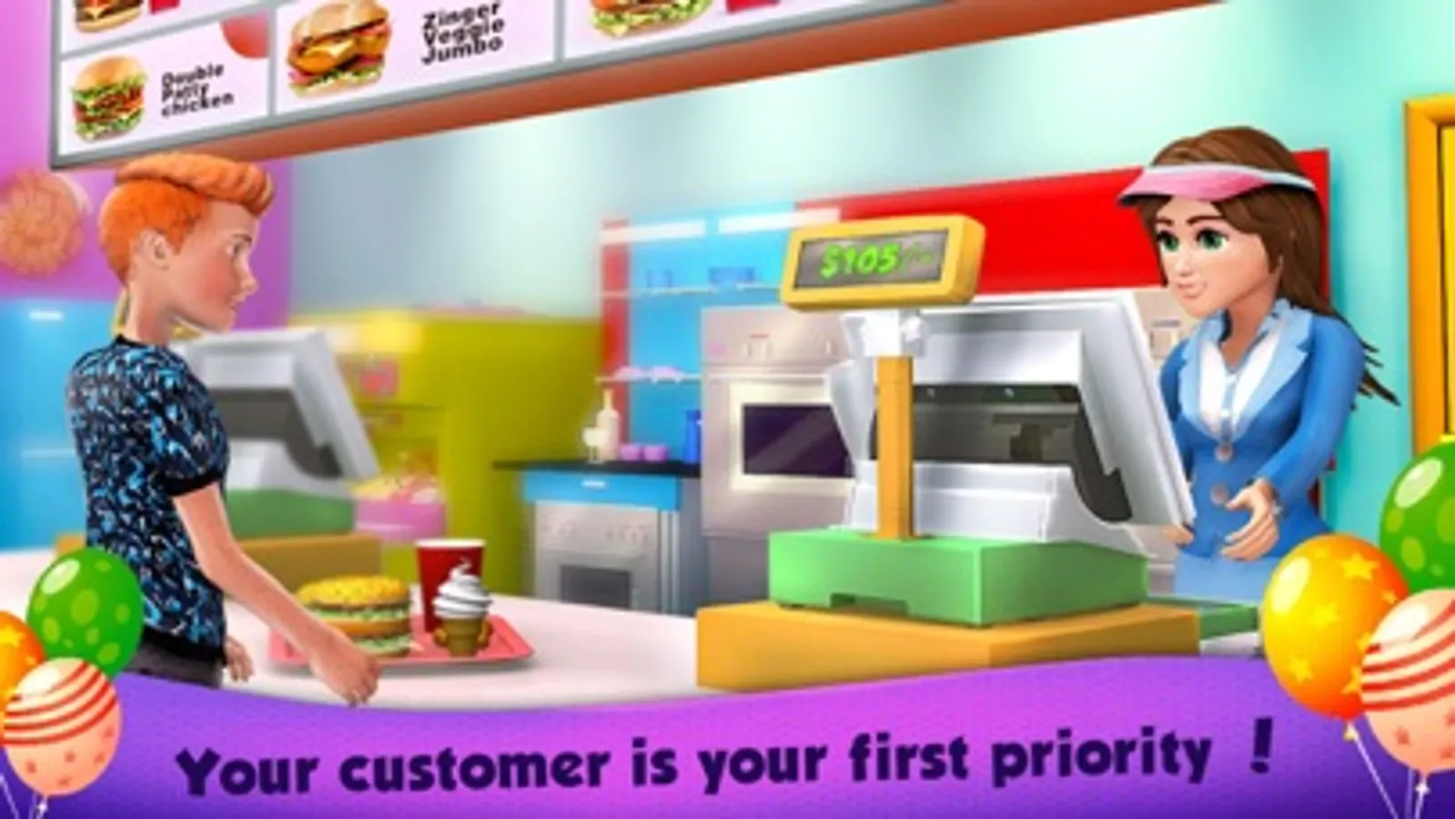 As the super star master chef in Supermarket Food Court Fever, master will be cooking yummy exotic dishes for breakfast, lunch and dinner with lots of ingredients to make customers happy. With proper time management, you can upgrade your cooking machines, buy more fast food restaurants and build your restaurant empire, get more customers, manage more orders, and earn more money! You can open your own restaurant chain where you can serve burgers, pizzas, ice cream & cakes. Have fun managing this awesome Supermarket Food Court, you also need to be cashier of your food court, it starts with a manual machine you have to enter the price of each item and get the total of all. Tap on the customer to receive money. Cash drawer will open and you can put the received money and return the balance amount to the customer. You can upgrade your manual point of sale, with the automated one so you can scan each order you can also accept credit card or through mobile NFC, and enter the total amount, followed by scanning the credit card or mobile!