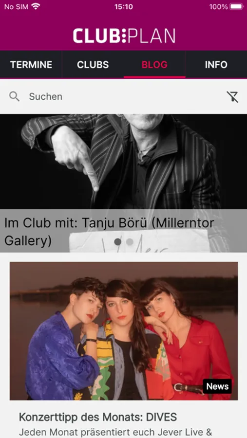 + Neben Konzerten und Partys präsentieren wir in der App auch weitere Veranstaltungen wie Lesungen, Quiz oder Slams.