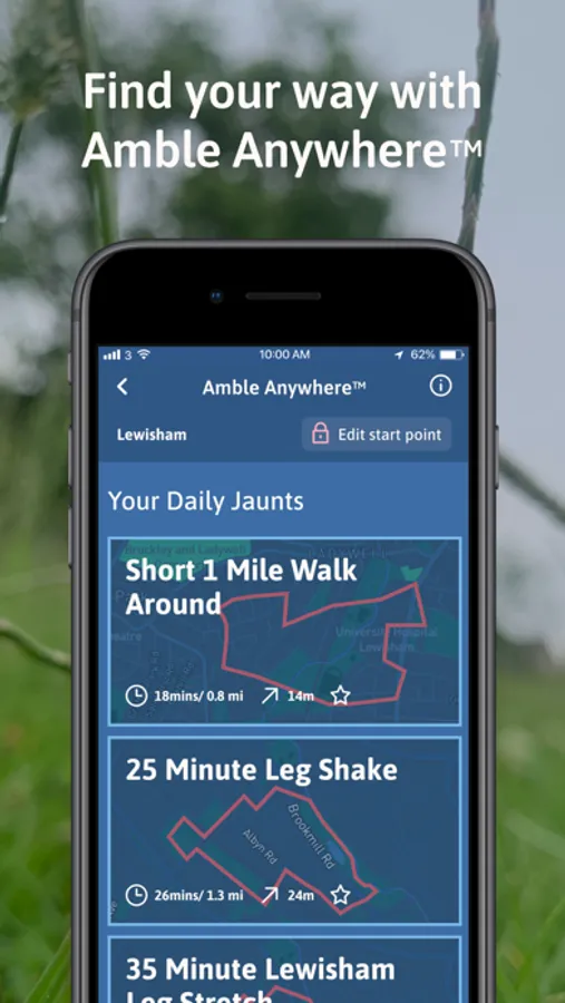 • Amble Anywhere™ works like magic. Find unique routes around new parks or nature reserves or discover unique waterside walks just for you. Pick a start point, we’ll do the rest.