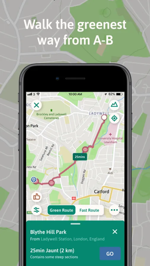We help you discover new walking routes straight from your door, connect you with everyday nature. Point you in the direction of the greenest route from A to B, helping you to become happier and healthier.