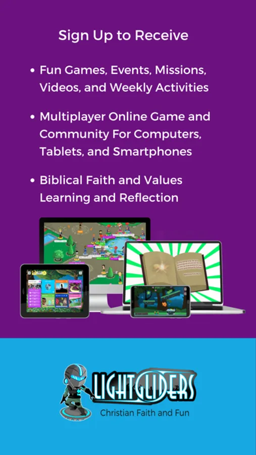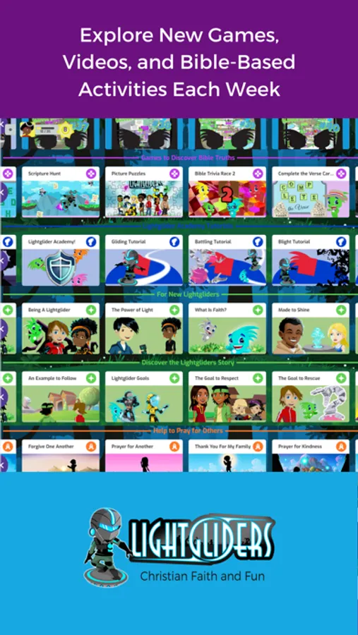 Enter Lightgliders to experience a virtual world of Christian faith, games, and community! Lightgliders is a multiplayer online game with exciting missions, a calendar of community events, and weekly activities that encourage biblical faith and values! Play fun games and watch videos to level up your Lightglider and unlock more to do in the Academy. Attend in-game events to meet new friends and to get exclusive clothing, hats, and other items to customize your character. Learn how you were made to shine with Bible-based activities updated each week. Ask your parents to get Lightgliders for your computer, tablet, or smartphone today!