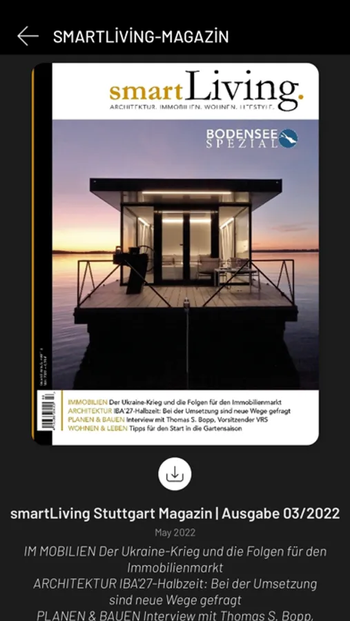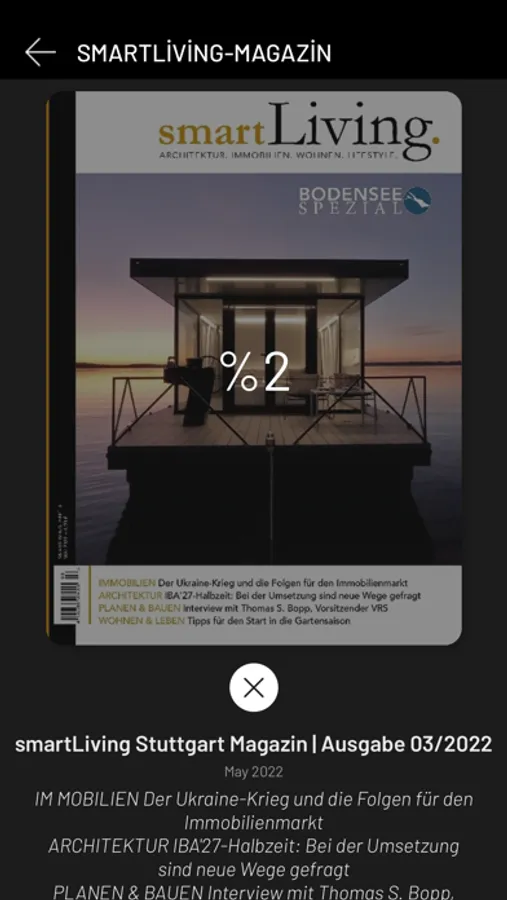 smartLiving-Magazin - das Immobilienmagazin für Stuttgart und die Region erscheint zehn Mal p.a.. In jeder Ausgabe berichten wir ausführlich über die fünf Kernthemen "Immobilien", "Finanzierung", "Versicherung & Recht", "Sanierung, Energie & Umwelt" und "Wohnen & Leben". Der Fokus unserer redaktionellen Arbeit liegt auf Themen, welche die Region Stuttgart betreffen.