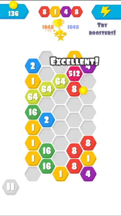 Merging more than four blocks will reward you with coins that later can be spend to purchase cool boosters. Take your time, plan ahead and think for a long as you need to, there is no hurry.