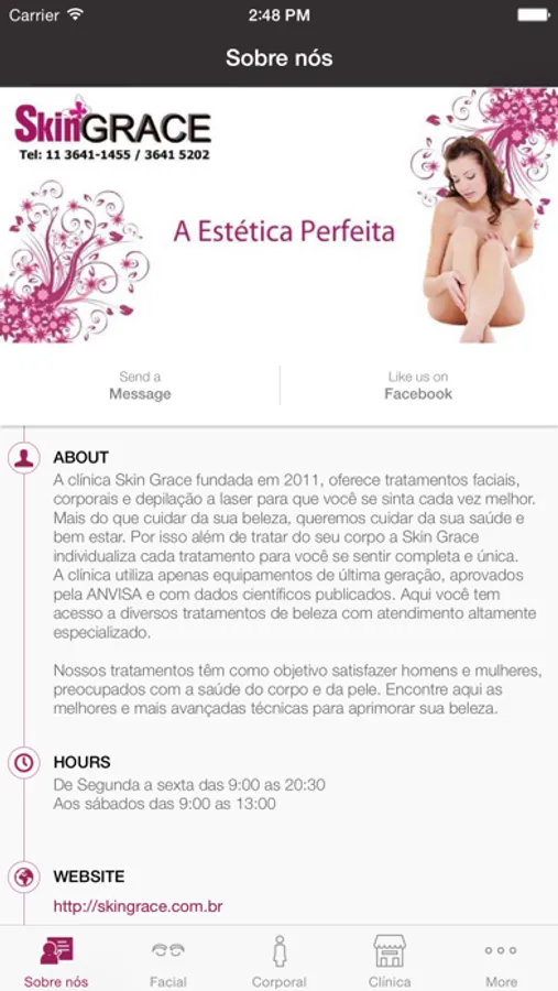 Visando atender com maior conforto seus clientes a SkinGrace lança seu aplicativo para dispositivos móveis, facilitando o acesso dos seus clientes a conhecerem mais sobre seus serviços e dados de contato.