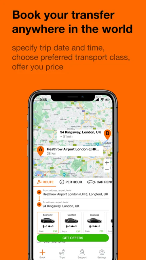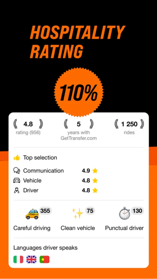 GetTransfer.com - marketplace for booking global ride-hailing services, where you can book transfers, long-distance trips, cab rides, hourly chauffeur-driven car rentals and delivery services in any country in the world. Attractive prices, vehicle ratings, hospitality ratings, photos and vehicle descriptions are available before you pay.