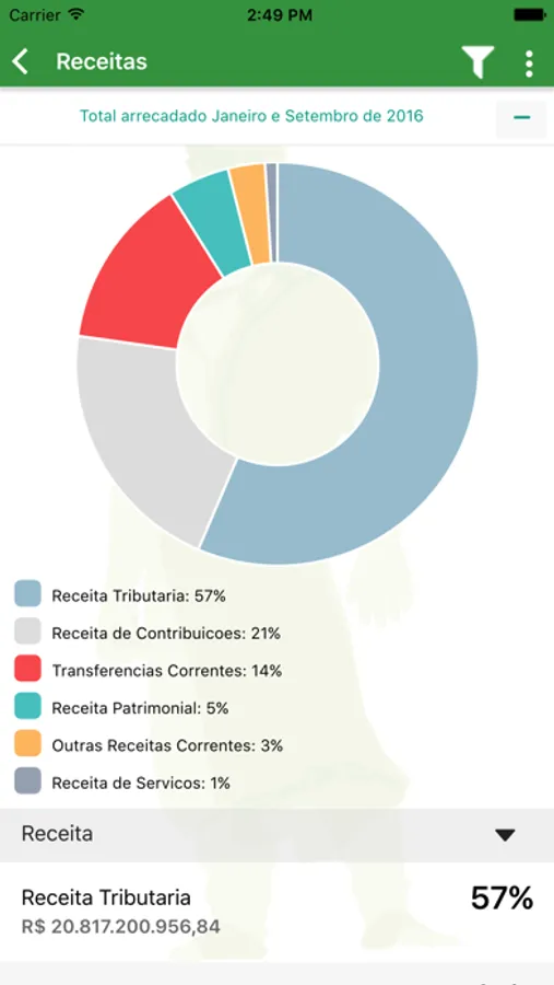 Consulta das Receitas oriundas de tributos e outras receitas recolhidas pelo Governo do Estado com detalhamento de suas origens (Ex.: ICMS, IPVA, ITCMD, Etc.).