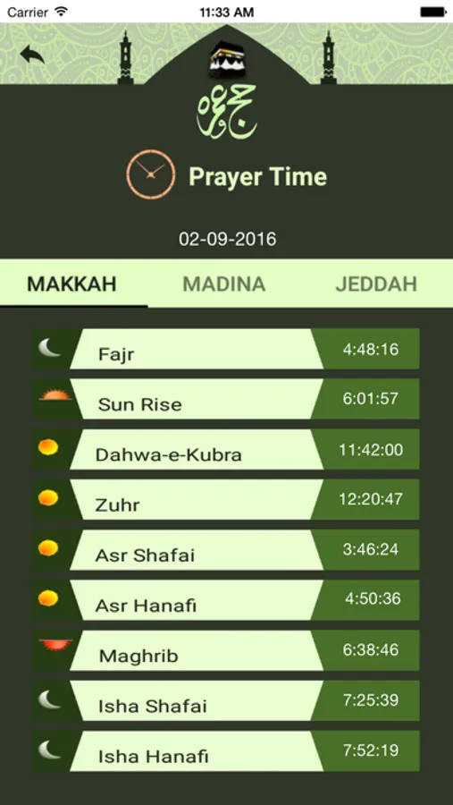 • Prayer Timings: Salah (Prayer) Timing of Makkah, Madina and Jeddah can be ascertained.