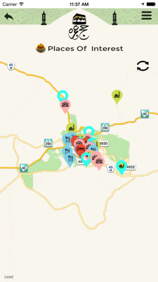 • Place of Interest: With this feature user can specify locations for Holy Places, Hotel, and Restaurant near by his current location.