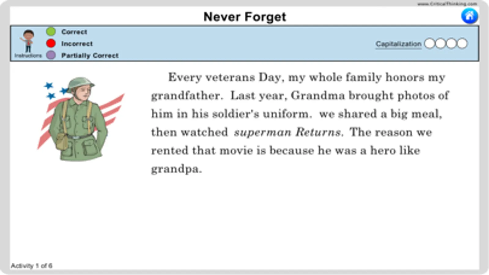 This fun, highly-effective educational app teaches students in Grades 2-3 grammar, punctuation, spelling, capitalization, and critical reading in a standards-based thinking approach instead of the usual drill and practice found in competing products. Students begin with an easy-to-understand lesson followed by activities that require students to carefully analyze and edit stories, letters, or articles that contain mechanical errors. This effective method allows students to gain mastery over concepts that will translate into their own writing.