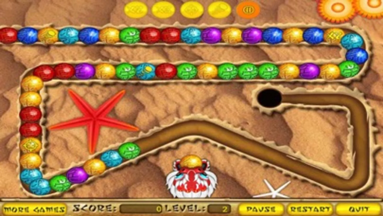 One of the most popular game ever is this Mazu deuxe game. So try to complete each level and you will discover the Mazu secret. Click into the groups of balls that have the same color and fire them. Don't let the string of balls reach the black hole or you will lose. there are 20 Levels.Have fun!