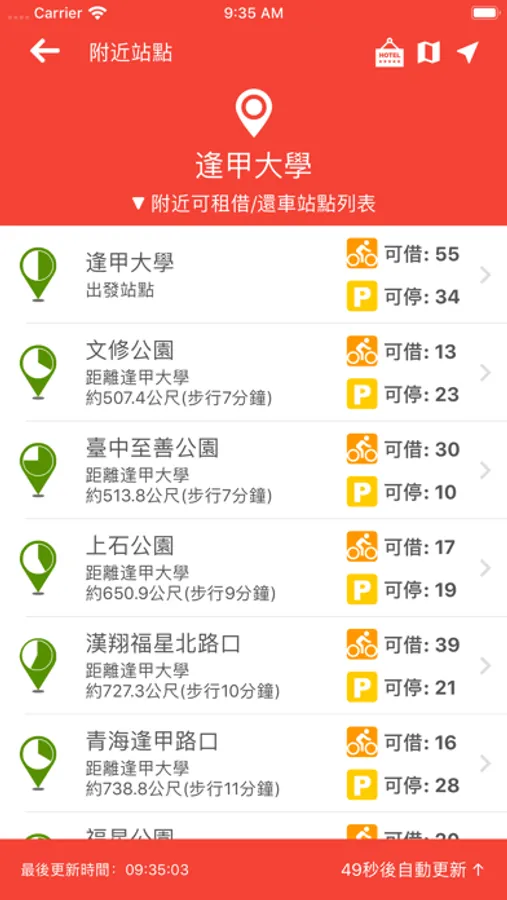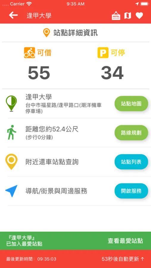 租借動態-即時更新可借車輛數與可停位置!