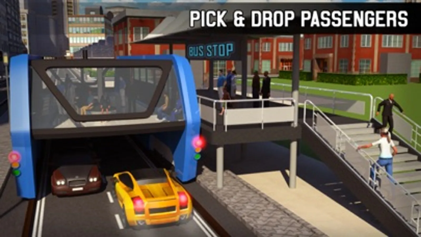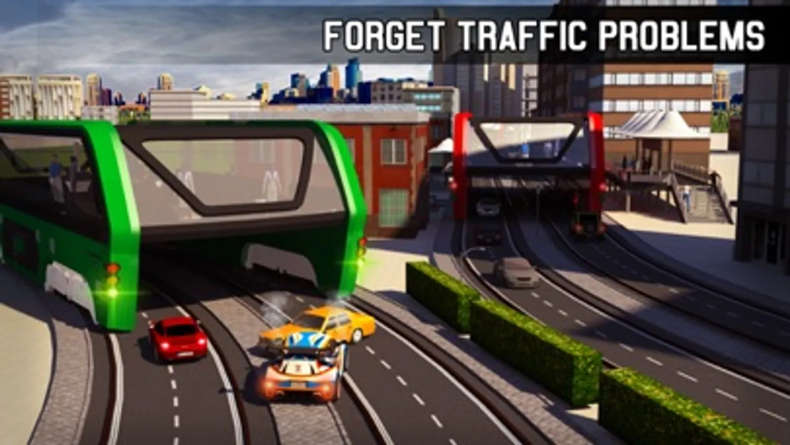 Straddling China bus is the future of public transportation in city rush. Hop into the high tech transit bus as real driver and guide it through city routes transporting citizens and tourists. This guided bus straddles above road traffic and transport passengers within city destinations. Get inside futuristic bus control room to maneuver gigantic vehicle. Pull race lever with full throttle for fast city bus driving. Straddling bus is powered by electricity so no need to refuel from gas stations. Enjoy first ever realistic Elevated Bus Simulator 3D game to pick & drop passengers on fixed routes. Forget traffic rush problems on busy roads when you can drive elevated bus sky high from ground to transport passengers. This sky hopper China bus is the ultimate solution to heavy city traffic. Drive good without crashing into building and unlock real bus driver status from driving school.