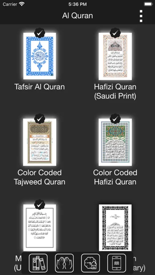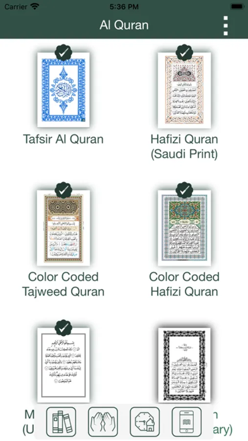 4. Choose and switch between your favorite Quran prints, as listed above.