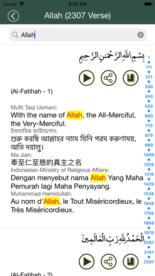 7. Offline Text-based Quran, offering translation and topic search in 41 languages.