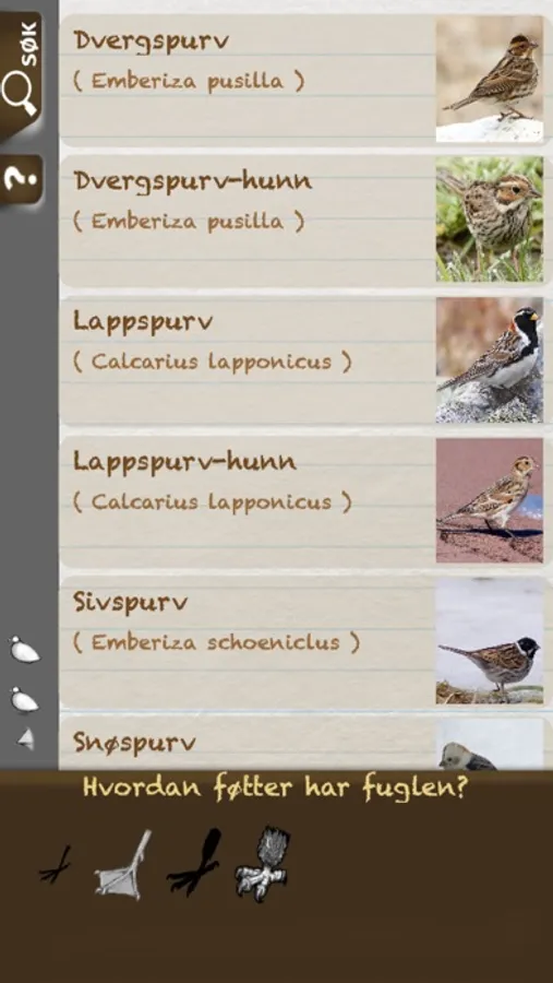I Naturen - Fugl har mange filtreringsfunksjoner og søkefunksjoner som hjelper deg å finne frem til den aktuelle fuglen.