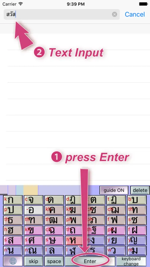 Thai characters after assembly, by pressing the "Enter" button,