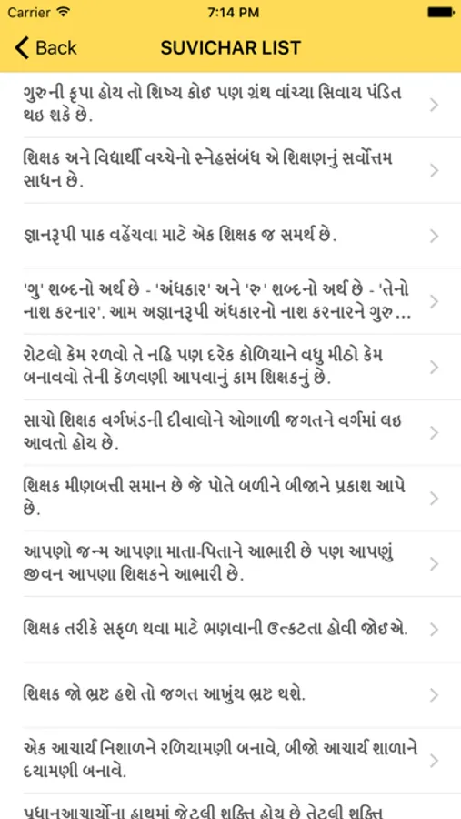 The Gujarati app has Suvichar from well known people across the globe and teaching important life lessons.