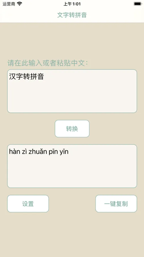 一键将文字转换成拼音,输入或者粘贴单个或者多个汉子,点击转换按钮即可显示出汉子的拼音全拼,同时还支持音调显示和繁体字的支持!