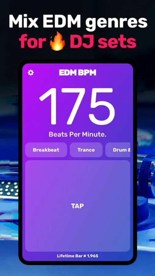 “I'm always opening up this app to tap out a song BPM. Work every time! And it's nice lookin too! I also like how the background pulses with the tempo u tap out. Nice job EDM team!”