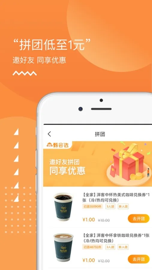 特色频道:早餐咖啡、1元拼团、新品出道、话费充值、每日必抢等