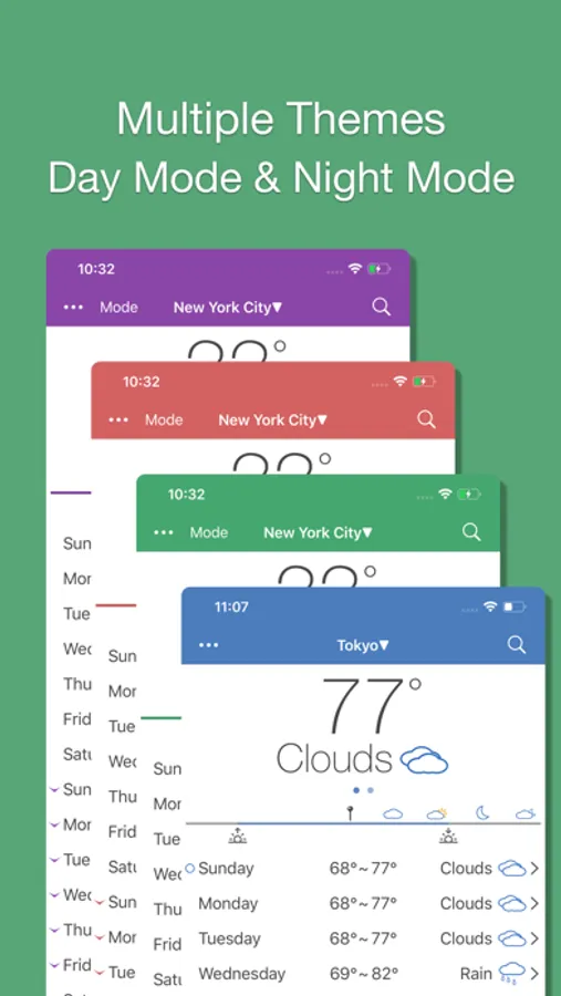 - Day & Night theme. (Changed based on sunrise & sunset time)