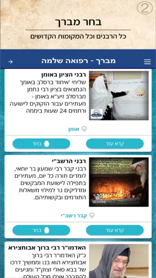 אפליקציה חדשנית ביותר המאפשרת נגישות טכנולוגית מיידית לראשונה לקבלת ברכות ותיקונים מרבנים, מקובלים או אברכים תלמידי חכמים ויראי שמים שיתפללו עבורכם בכל המקומות הקדושים בארץ ובחו"ל. והכל, ישירות לסמארטפון.