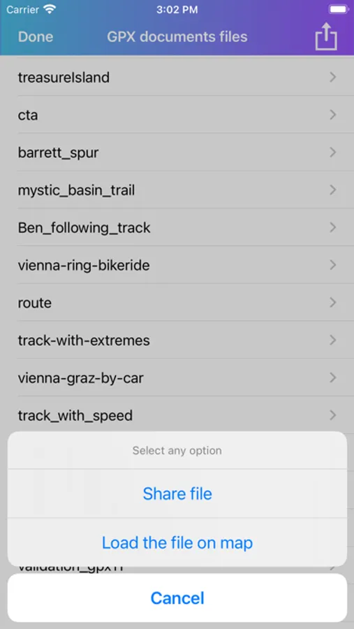 3) Share gpx files from other apps which will be similarly supported files like Email,WhatsApp,Add to Notes,Add to iCloud Drive,Save to files and other apps.