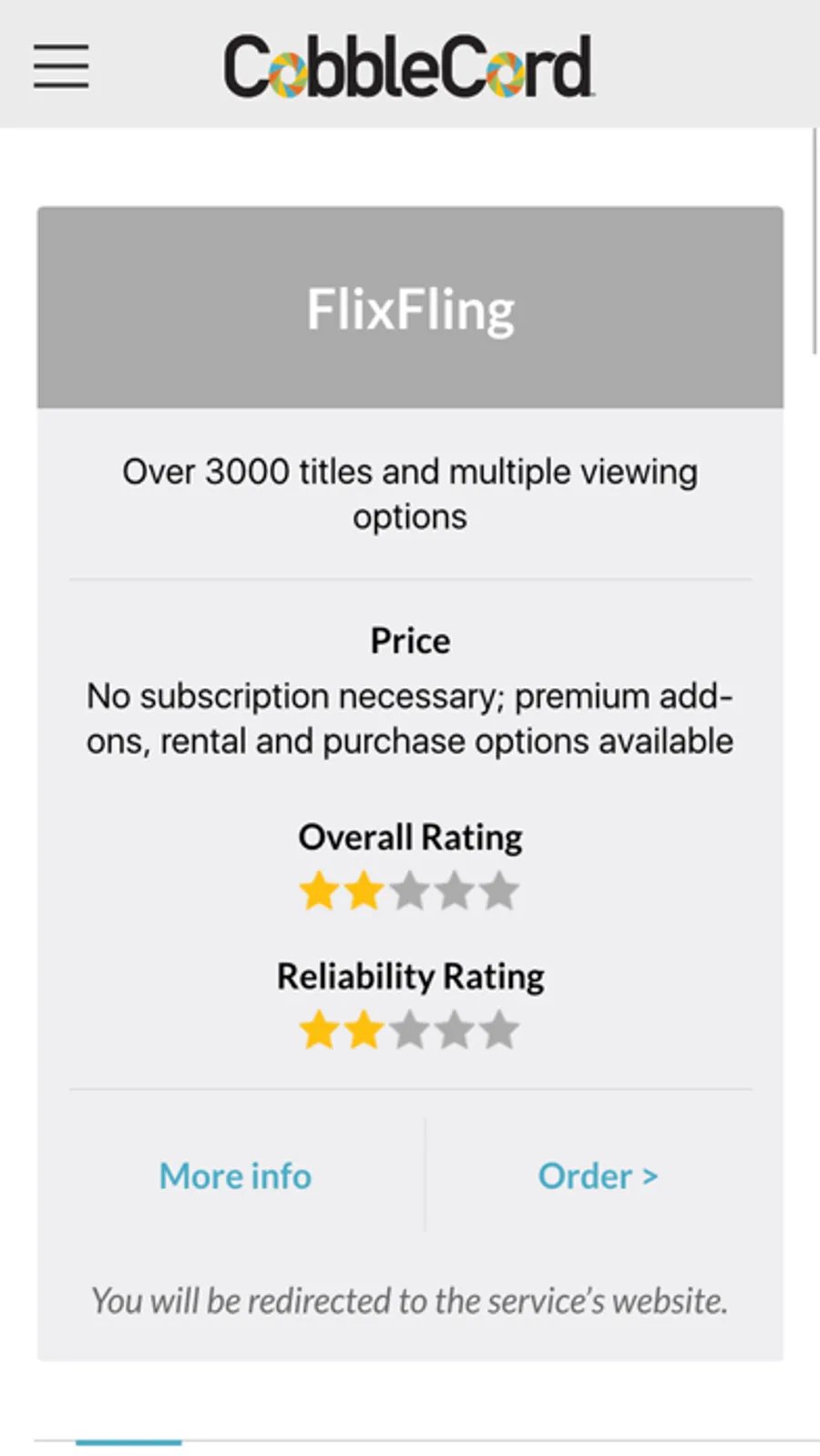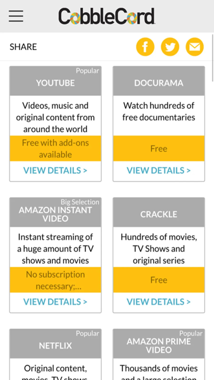 If you’ve been on the cord-cutting fence for too long, CobbleCord can help you finally take action. And if you've already cut the cord, CobbleCord can ensure that you’re getting the most for your entertainment dollar. It’s the entertainment tool that you’ve been waiting for.