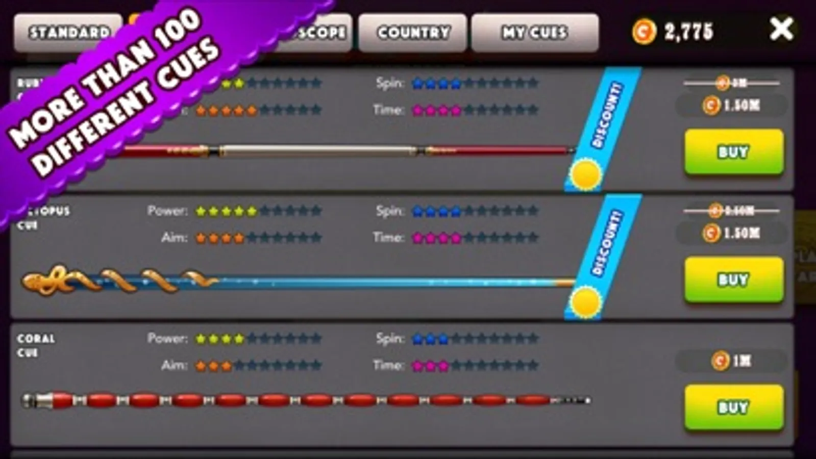 "Download" Pool Strike now and start to win "free coins" and "free cues" with rewarded videos...