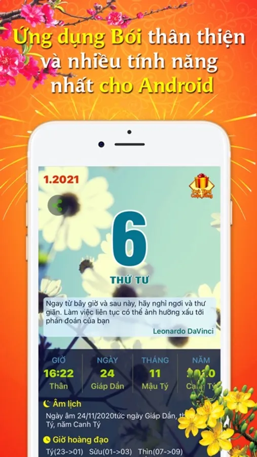 Cài duy nhất ứng dụng để xem bói, xem lịch, xem tử vi, xem lời hay ý đẹp và rất nhiều những thông tin hữu dụng khác.