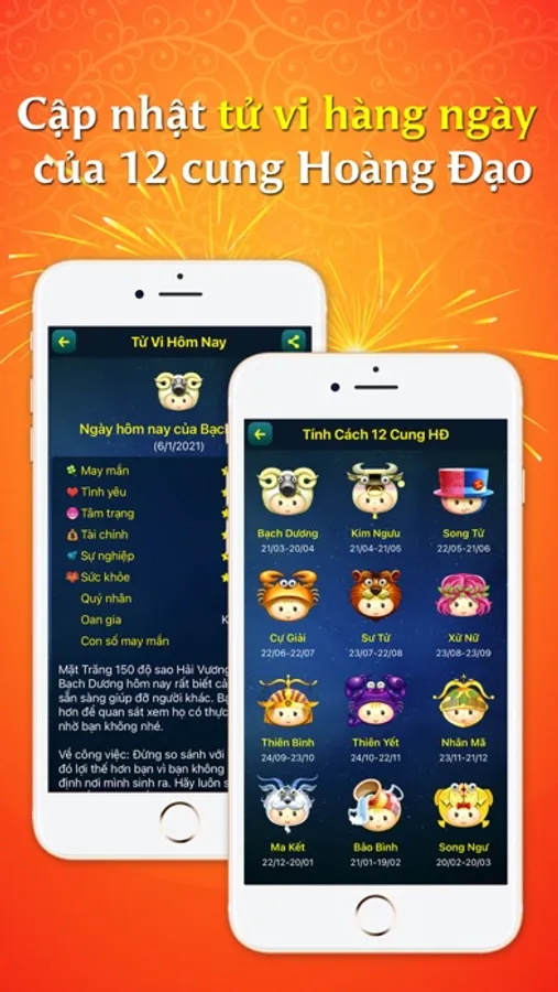 ● "Tử Vi Hôm Nay": Cập nhật hàng ngày, dự báo mức độ may mắn, tình yêu, tâm trạng, tài chính, sự nghiệp, quý nhân, oan gia, con số may mắn của 12 cung hoàng đạo