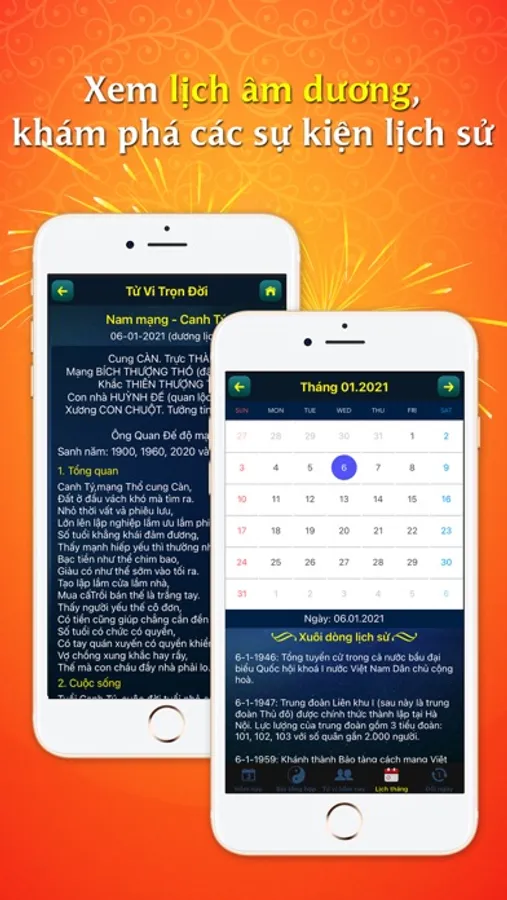 ● "Đổi lịch âm dương": Đổi ngày dương lịch sang âm lịch và ngược lại nhanh chóng, chính xác.