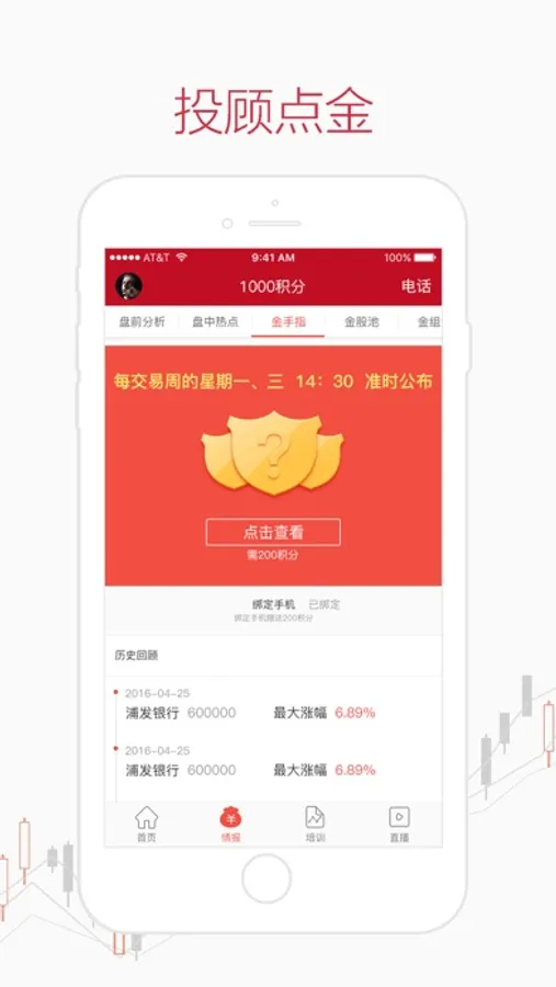 “金投顾”是中证热点网推出的一款以资讯、实战为核心,集股市资讯、策略建议、资讯服务、股市直播为一体的一站式专业投顾服务平台!基于中证报强大的资讯平台,股票热点题材实时发布,股市重要事件深度解读;并拥有市场独一无二的量子风控系统,多次成功逃顶抄底;商务部研究院信用评级与认证中心唯一合作伙伴,独家披露上市公司财务安全;上百位持牌投顾高手24小时在线免费解答个股,盘中4小时无间断直播互动!