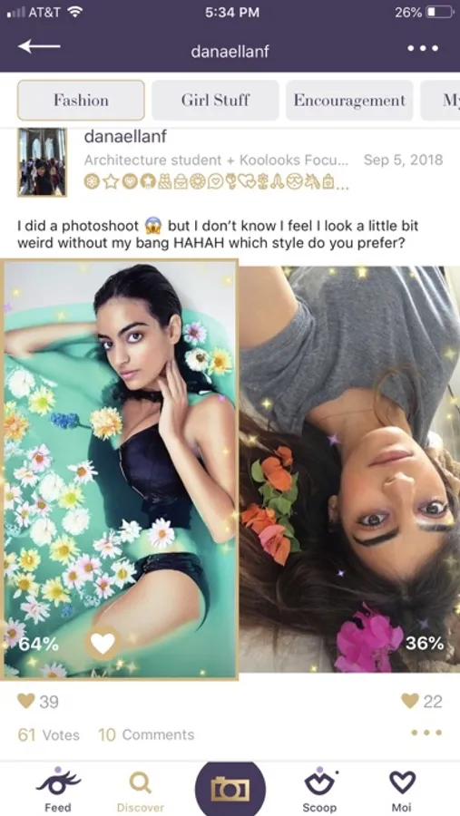 Koolooks “Fashion” shares latest fashion trends from all over the world. Share two different outfits, and get help deciding what to wear. “Girl Stuff” features beautiful travel destinations, motivational content, beloved pets, and vegetarian fare. “Encouragement” category provides support and understanding, if you are going through a difficult time. “My Culture” is your story, and what it is like to live in your country. “Koolshop” allows you to sell, trade, and feature clothing and accessories with our community. Share about your family, friends, hobbies, and more about yourself in our “Moi” category. Check out our latest “Contests” category and enter to win cash prizes!