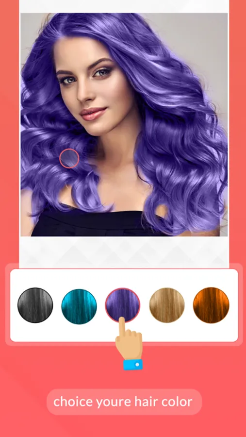 Hair Color Changer set all you have to do is take your own photo, brush your hair, and then choose different hair colors.