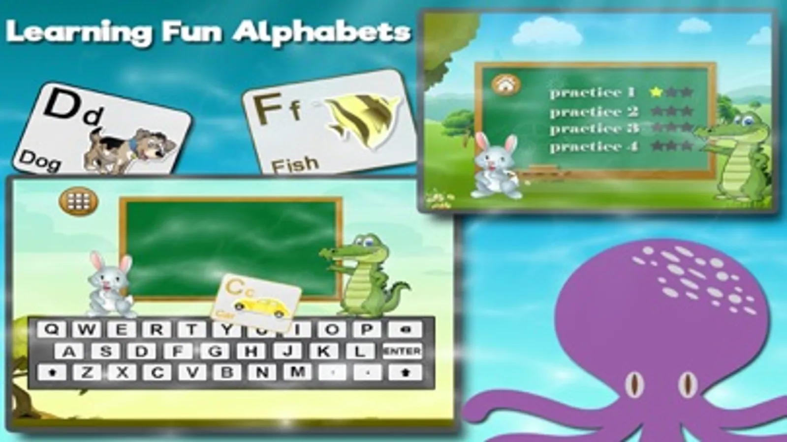 ABC Keyboard: ABC Learning Game will teach little kids to read and type before they go to school. Fun animations and characters make learning particularly exciting for kids of all ages.Your lids will motivated by star system