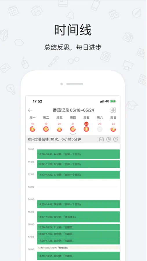 Daily review and summary help you improve each day. It is clear to see what did you do in every time period by recording time blocks.
