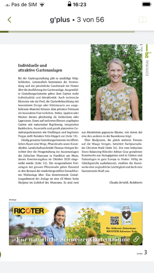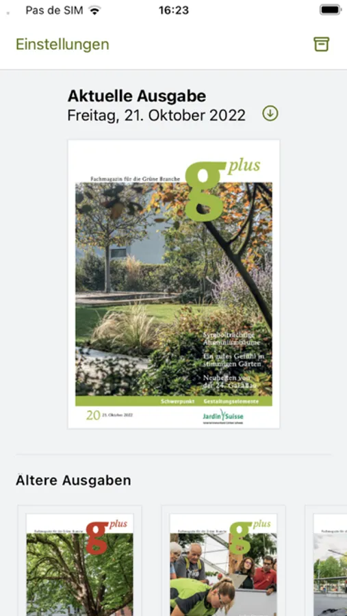 Das offizielle App der Fachzeitschrift g’plus des Unternehmerverbandes Gärtner Schweiz JardinSuisse.