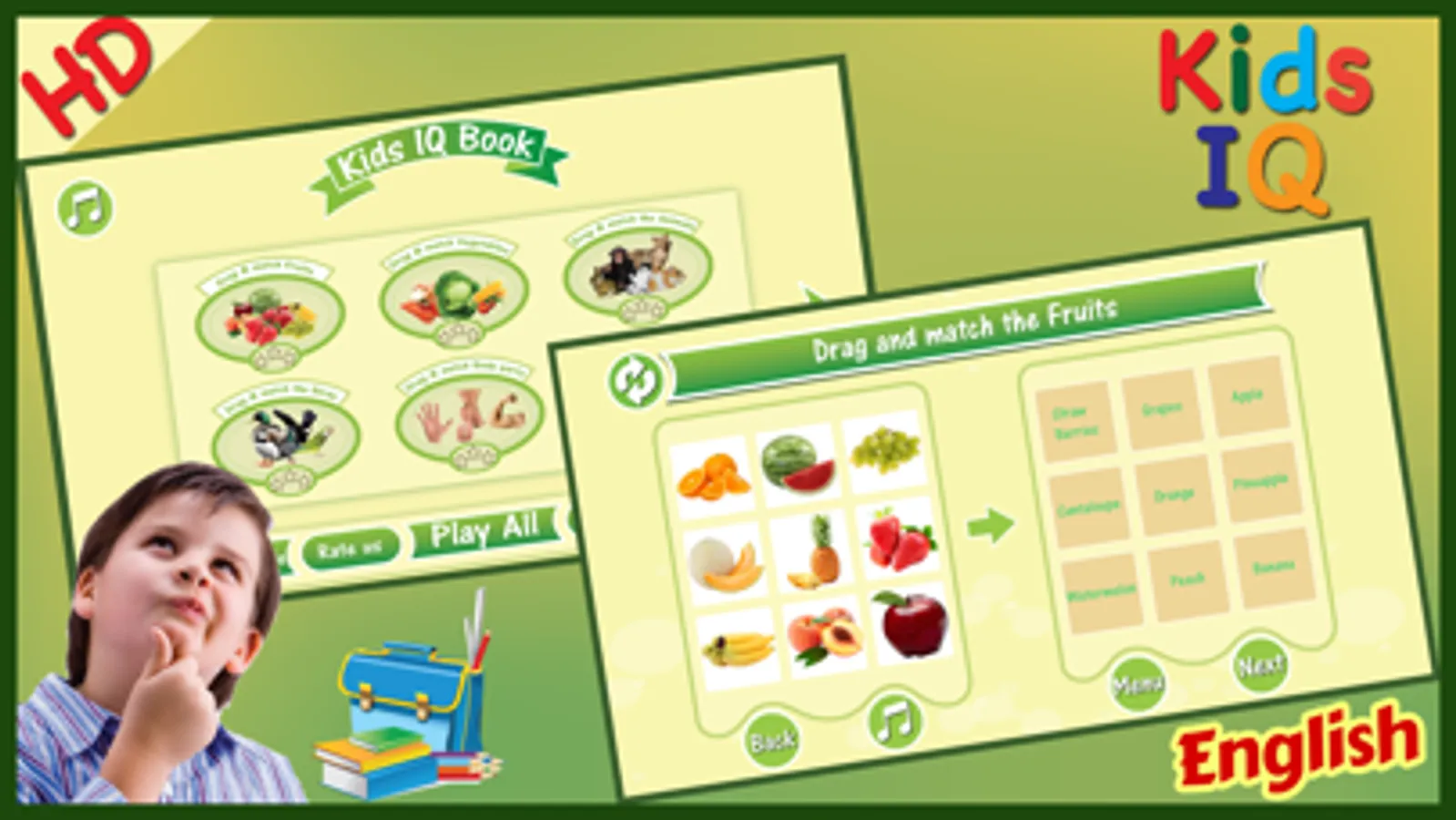 The app contains more then 20 different categories for kids to play. The user has to drag n drop the objects on its respective box placed parallel to it.